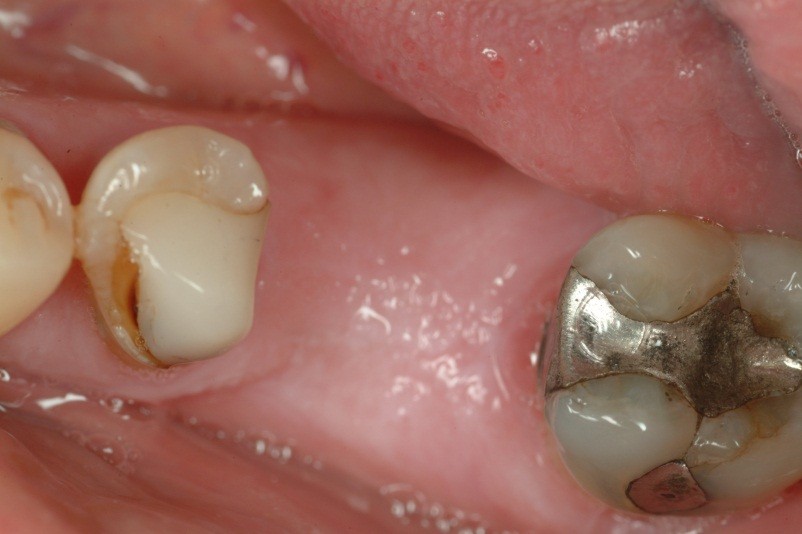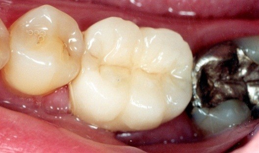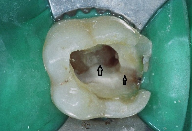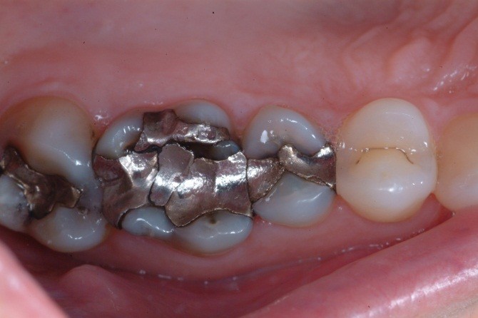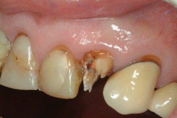 A toothache caused by a broken tooth (tooth fracture) without associated cavity or advanced gum disease. Biting on the area of tooth fracture can cause severe sharp pains. These fractures are usually due to chewing or biting hard objects such as hard candies, pencils, nuts, etc. Sometimes, the fracture can be seen by painting a special dye on the cracked tooth. Treatment usually is to protect the tooth with a crown. However, if placing a crown does not relieve pain symptoms, a root canal procedure may be necessary.